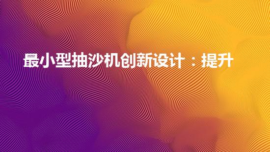 最小型抽沙機創新設計:提升效率的抽沙設備如何改變產業格局?