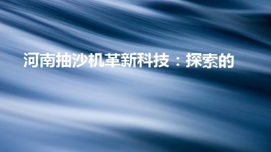 河南抽沙機革新科技:探索的未來?